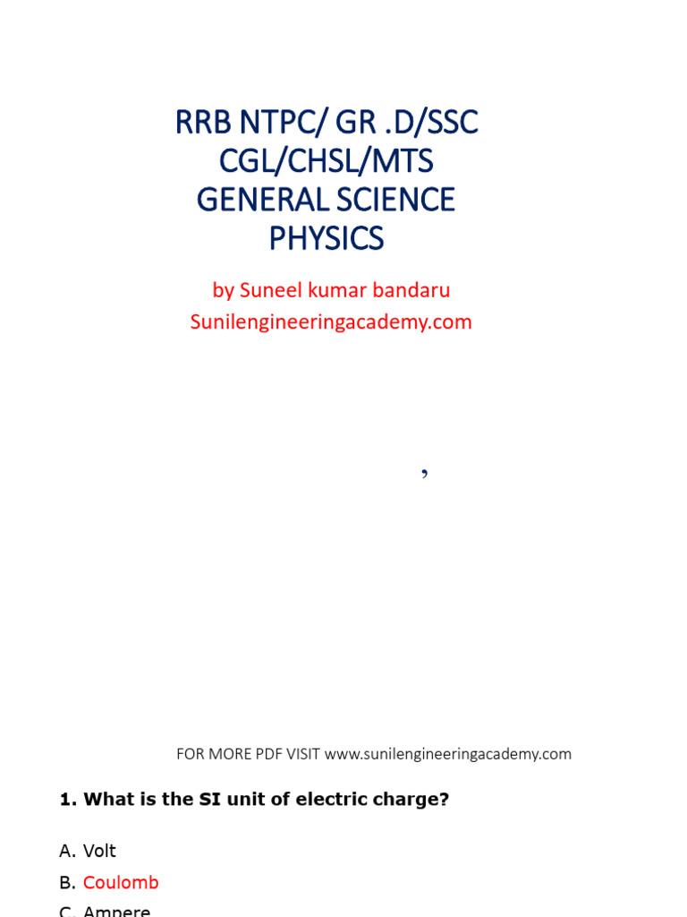 Physics MCQ by Suneel Sir 03112021 | PDF | Voltage | Acceleration