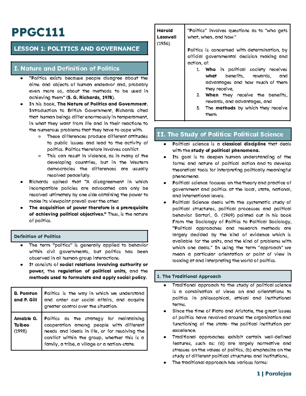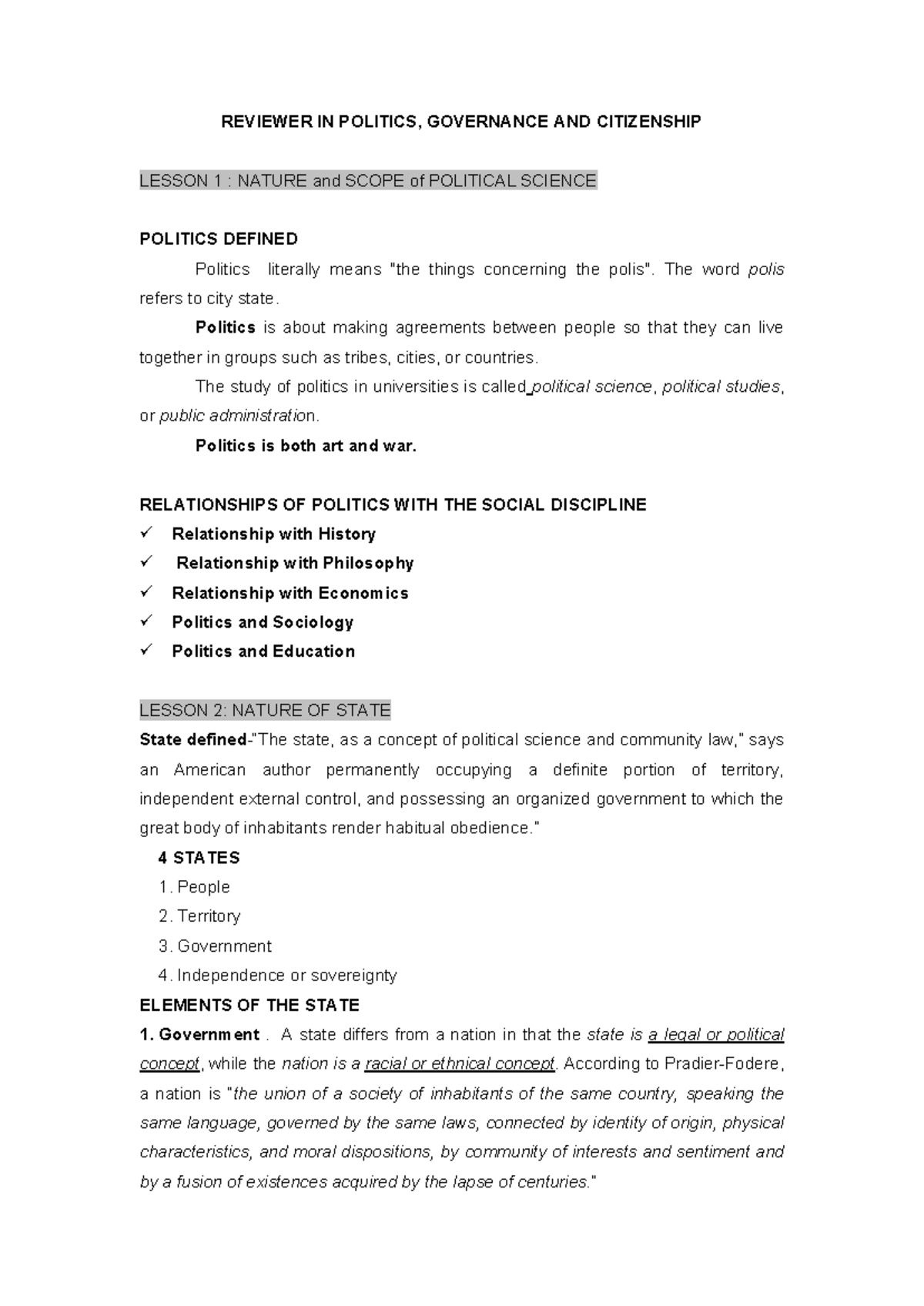PPGC111 Prelims: Politics, Governance, and the State (Lessons 1-5 ...