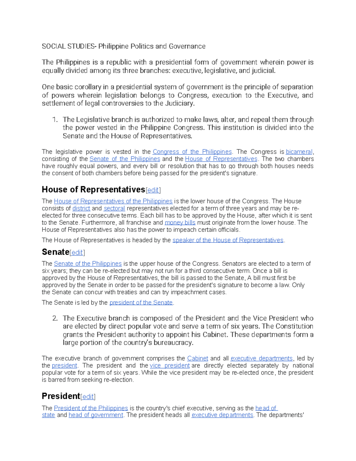 Philippine Politics and Governance: Lesson Plan on Gov't Branches - Studocu