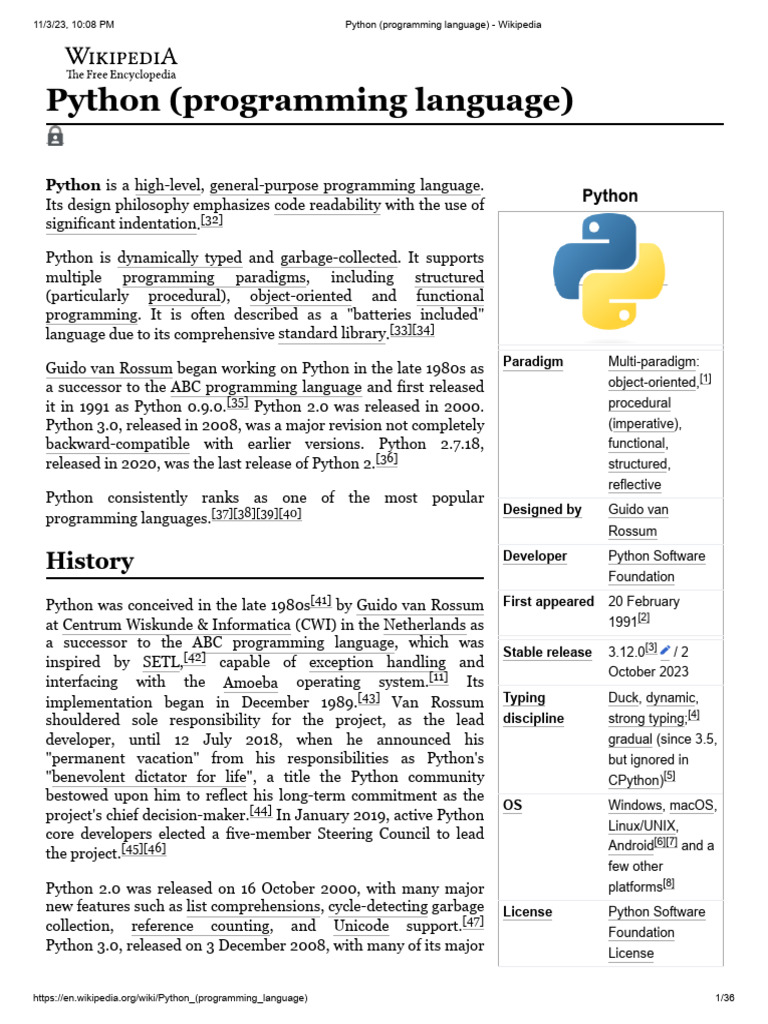 Python (Programming Language) - Wikipedia | Download Free PDF | Python ...