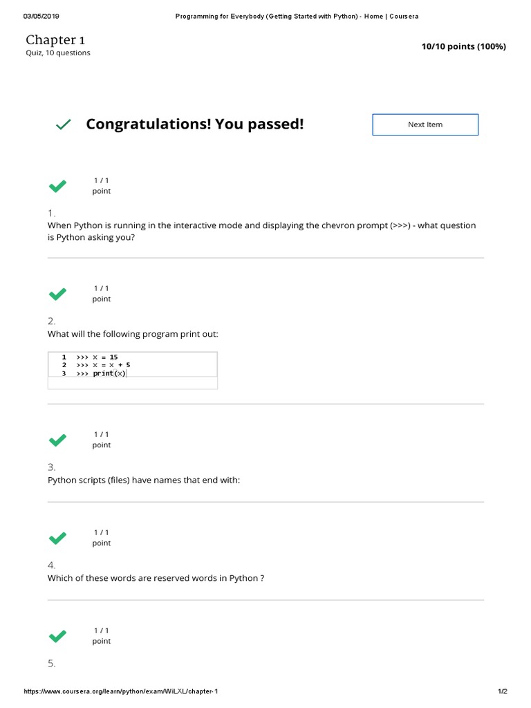 ALL QUIZ ANSWERS | PROGRAMMING FOR EVERYBODY (GETTING STARTED WITH ...