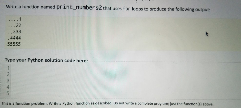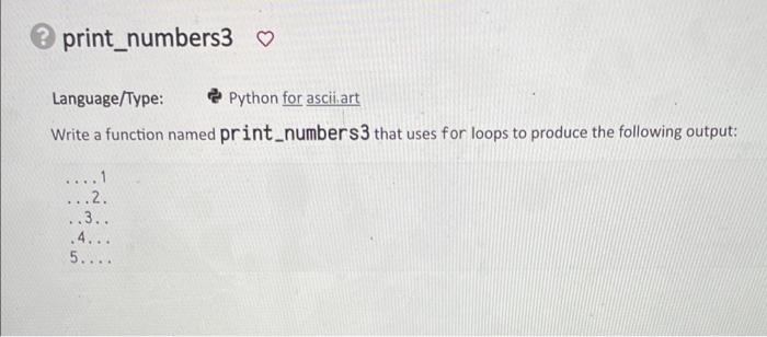 Solved Write a function named print_numbers2 that uses for | Chegg.com