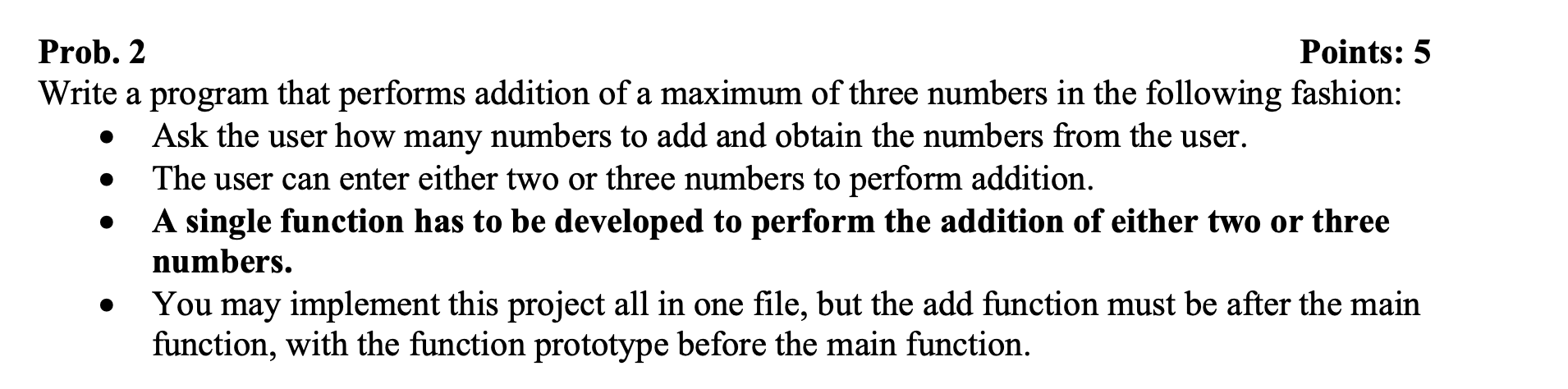 Solved Prob. 2 Points: 5 Write a program that performs | Chegg.com
