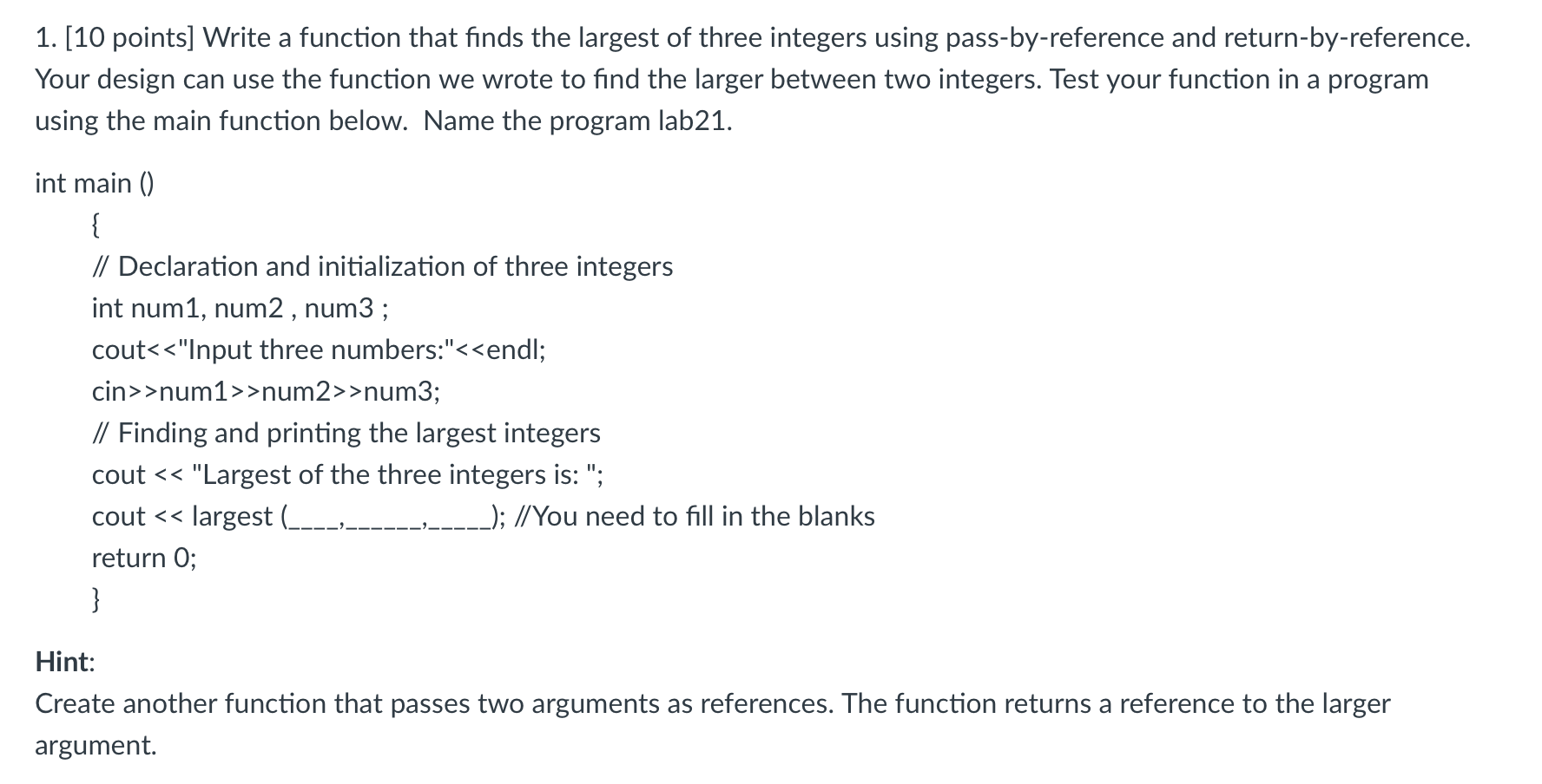 SOLVED: 4. Write a program that finds the maximum of three numbers ...
