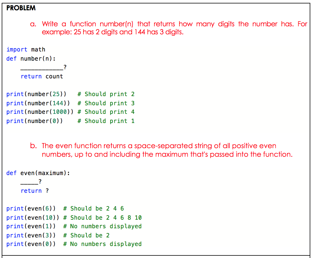 Solved PROBLEM a. Write a function number(n) that returns | Chegg.com