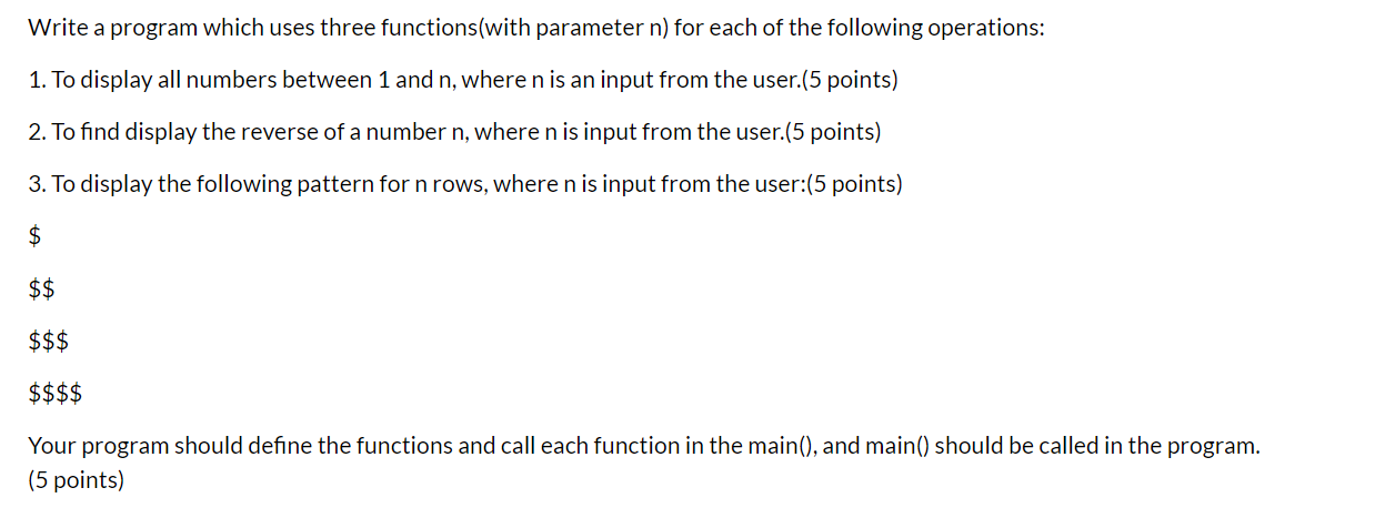 Solved [Programming Question Question] Write a function that | Chegg.com