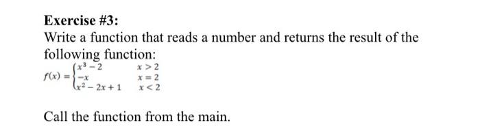 Solved Exercise #3: Write a function that reads a number and | Chegg.com