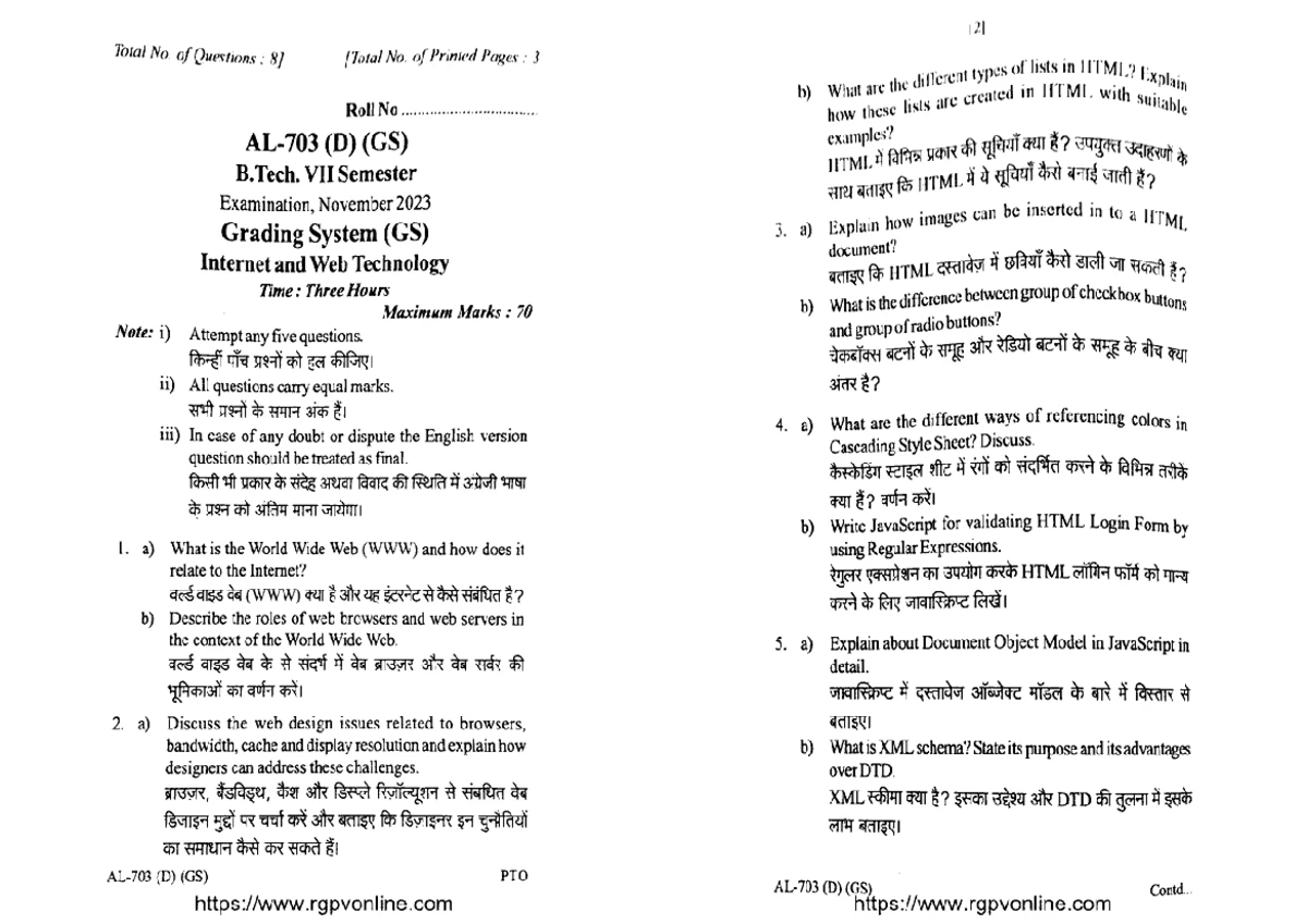 ️ RGPV Internet and Web Technology Notes, Old Papers Solutions ...