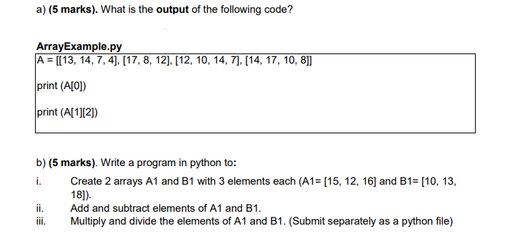 Solved a) (5 marks). What is the output of the following | Chegg.com