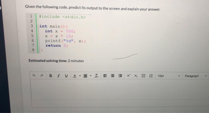 Solved Given the following code, predict its output to the | Chegg.com