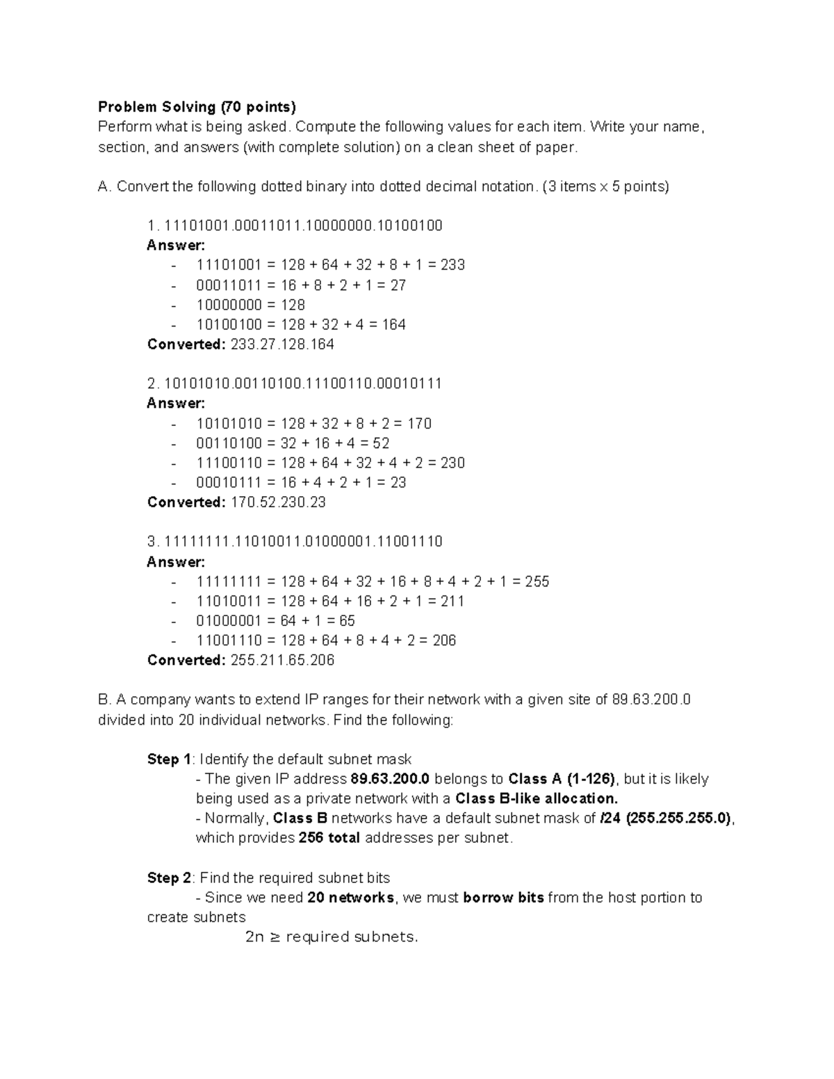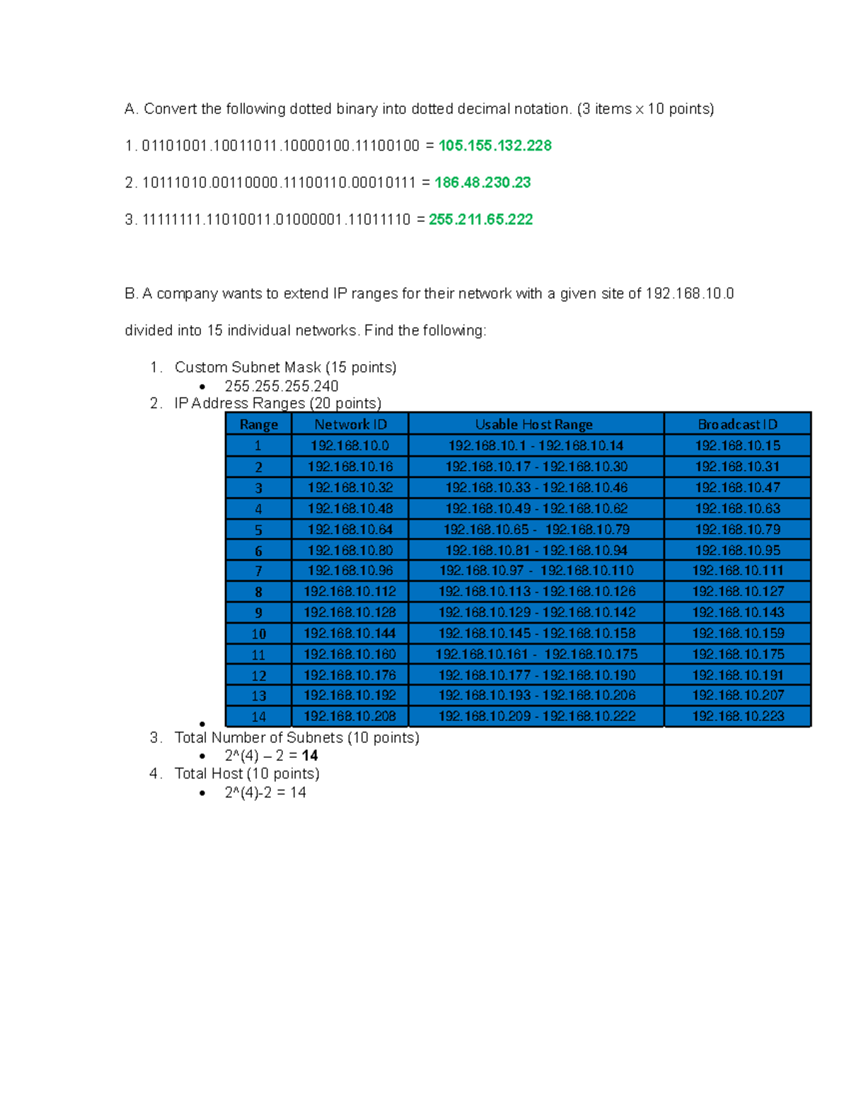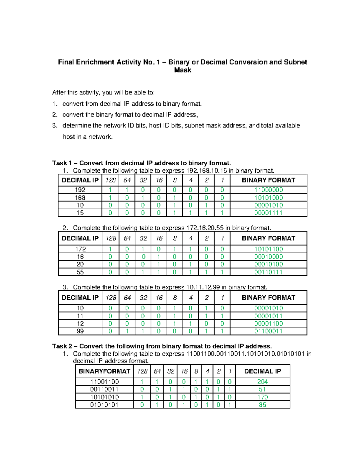 NET102Final Enrichment Activity 1-Binaryor Decimal Conversionand Subnet ...
