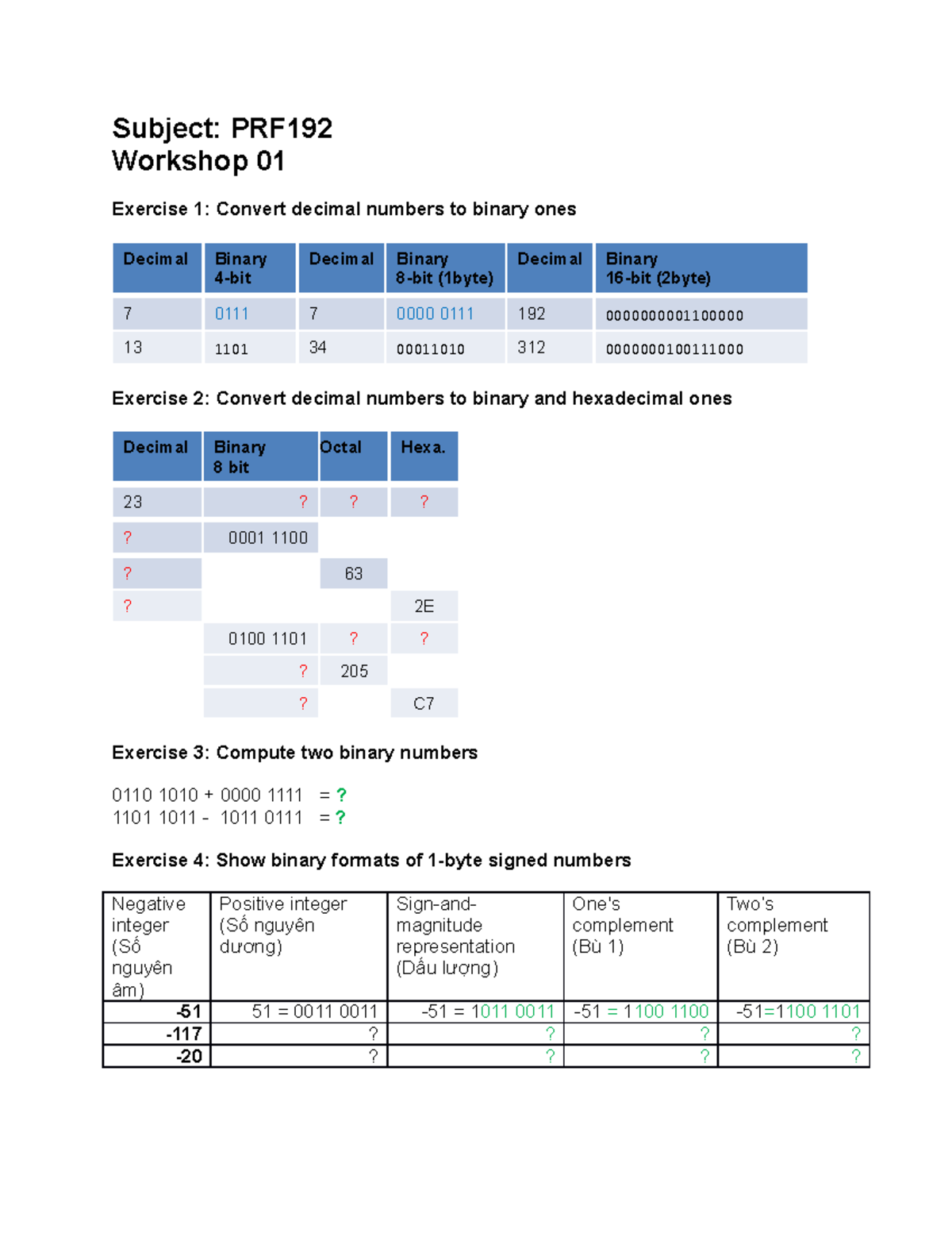 Workshop 01 - abc - Subject: PRF Workshop 01 Exercise 1: Convert ...