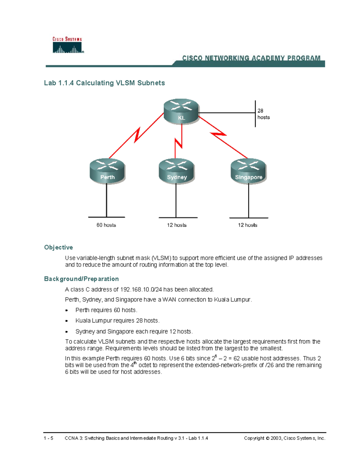 Calculating VLSM Subnets for Lab 1.1.4 - Studocu