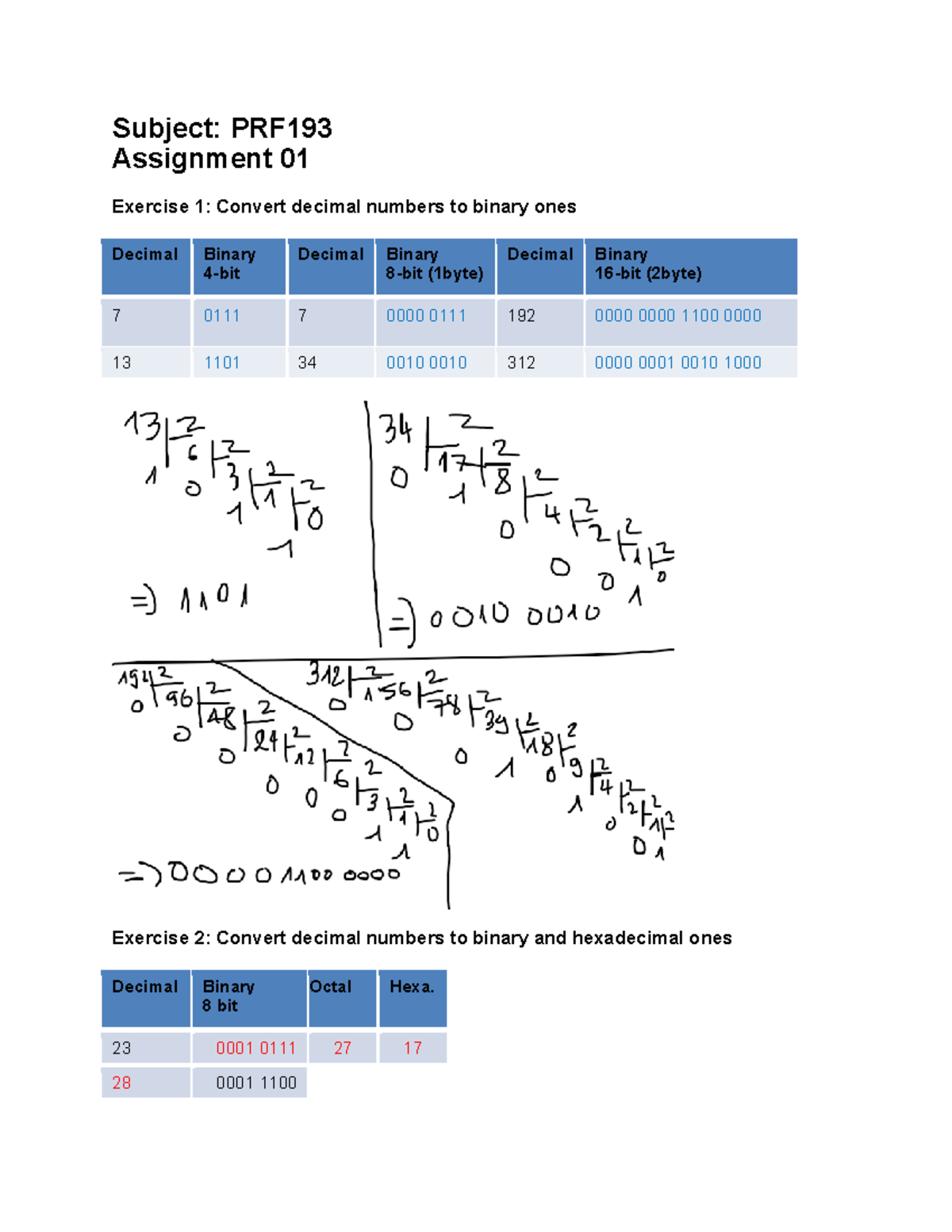 PRF193 Assignment 01: Decimal to Binary Conversion Exercises - Studocu