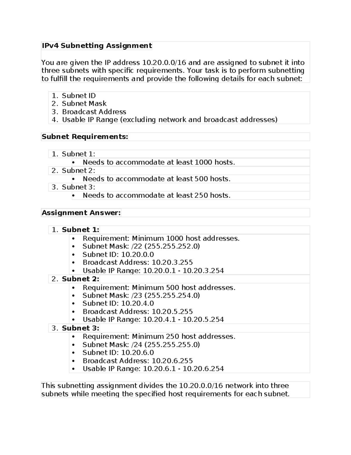 IPv4 Subnetting Assignment 3: Creating Subnets for Host Requirements ...
