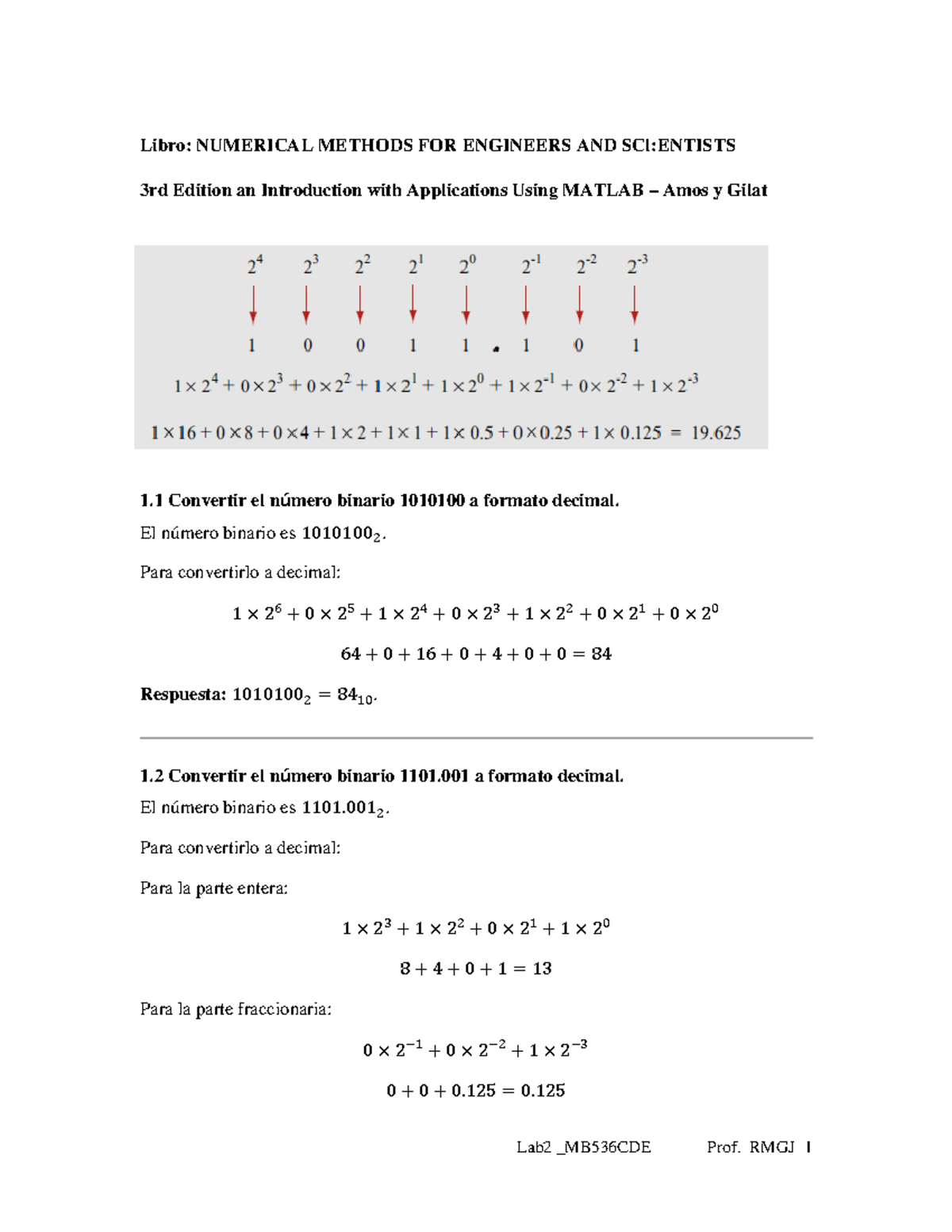 Ejercicio 1: Conversión de Números Binarios a Decimal - Lab2 MB536CDE ...