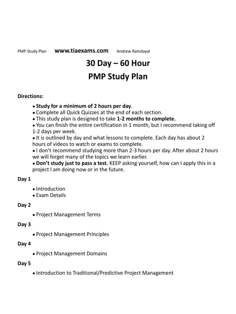 30 Day Study Plan.docx | PDF | Project Management Professional | Agile ...