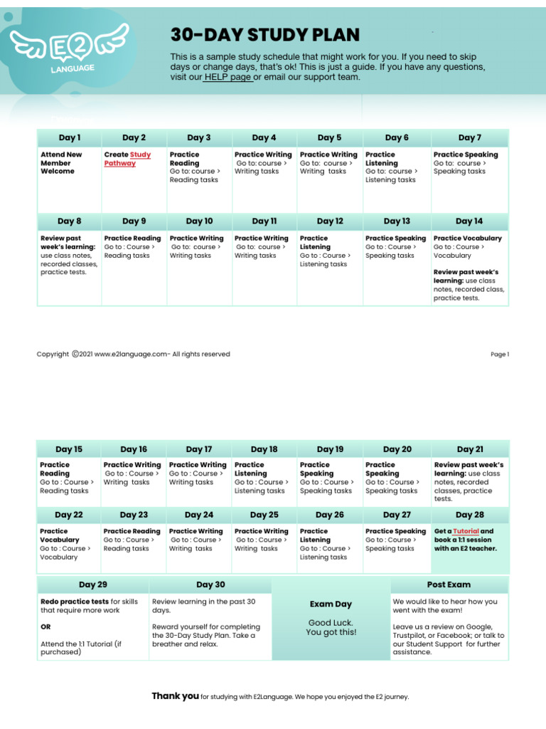 PTE 14 to 30 days study plan | Routine | self-practice | 2024 | best ...