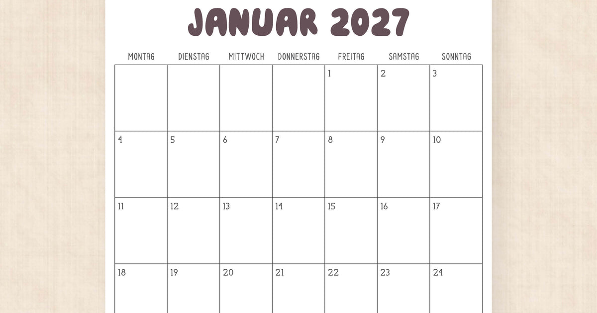 Kostenloser Kalender 2027 als PDF zum Ausdrucken