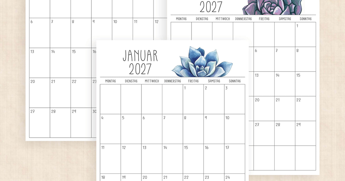 Kalender 2027 zum Ausdrucken · Sunkissed Succulents
