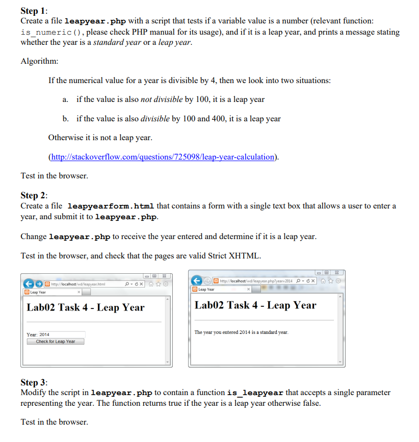 Solved Step 1: Create a file leapyear.php with a script that | Chegg.com