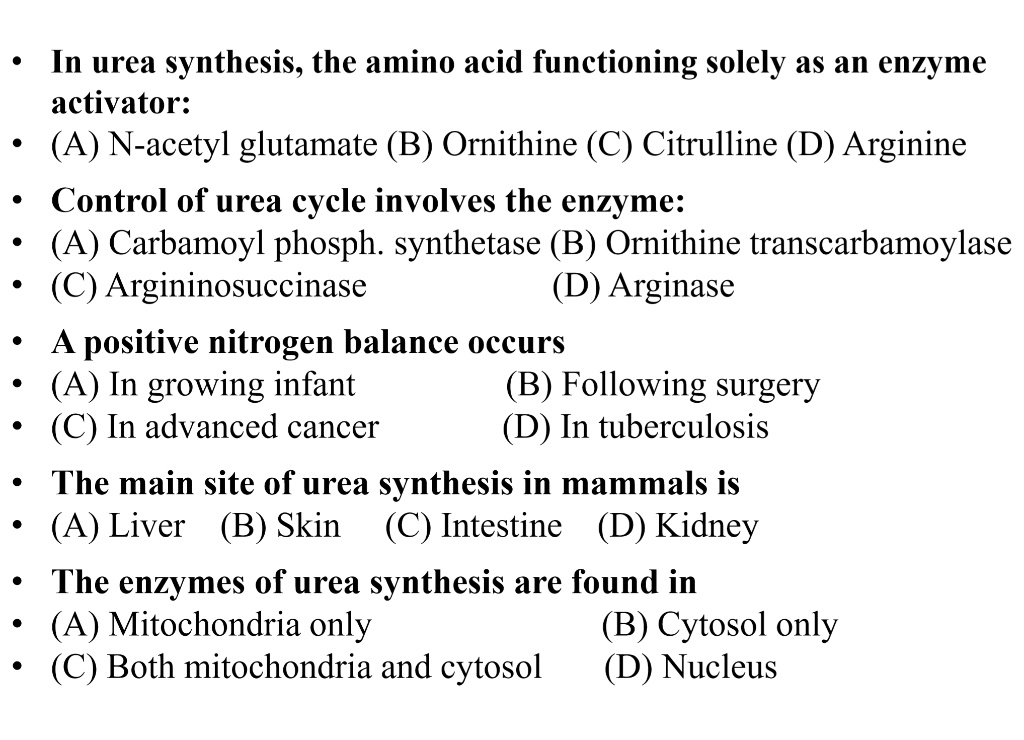 SOLVED: In urea synthesis, the amino acid functioning solely as an ...