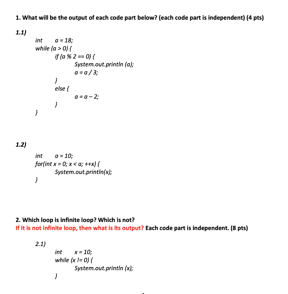 Solved 1. What will be the output of the following code? int | Chegg.com