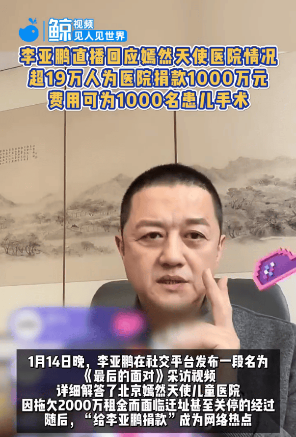 李亚鹏直播回应嫣然天使医院情况:超19万人为医院捐款1000万元