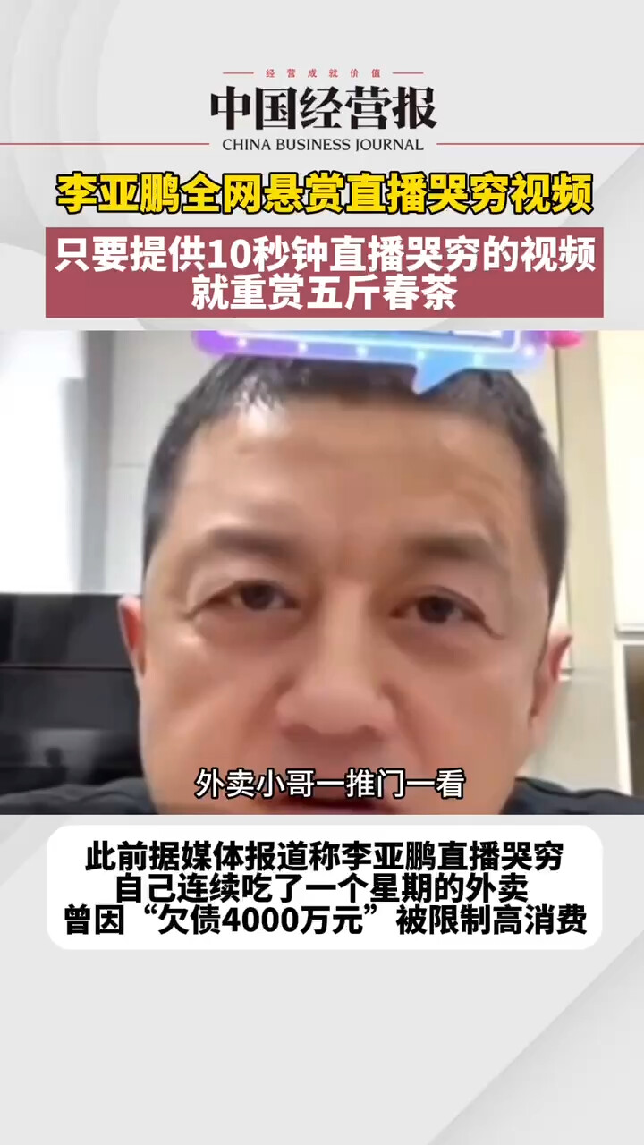 李亚鹏回应直播哭穷上热搜,全网悬赏视频重赏五斤春茶_腾讯新闻