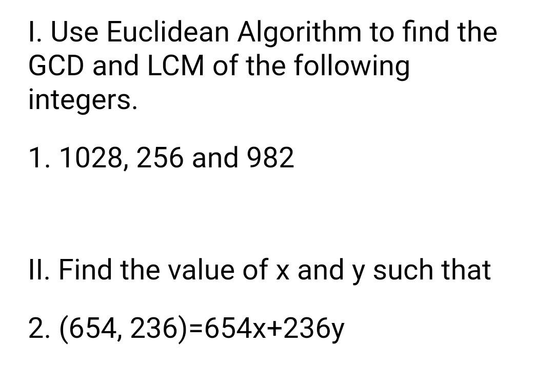 Solved I. Use Euclidean Algorithm to find the GCD and LCM of | Chegg.com