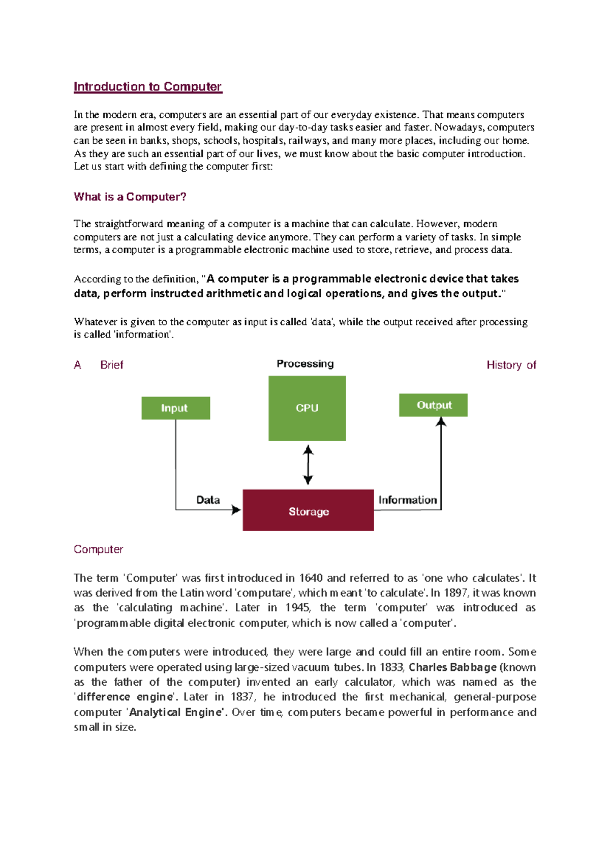 MCA Notes UNIT - 1 PART1 - Introduction to Computer In the modern era ...