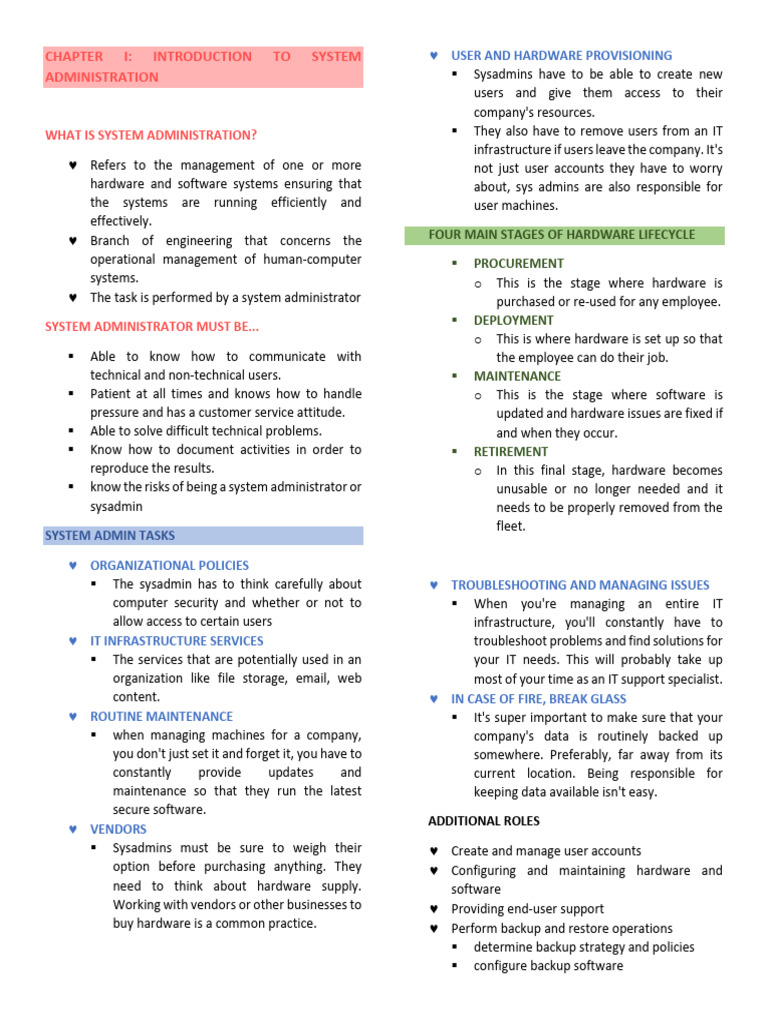 CHAPTER1 Reviewer - Introduction To System Administration - Sir Ryan ...