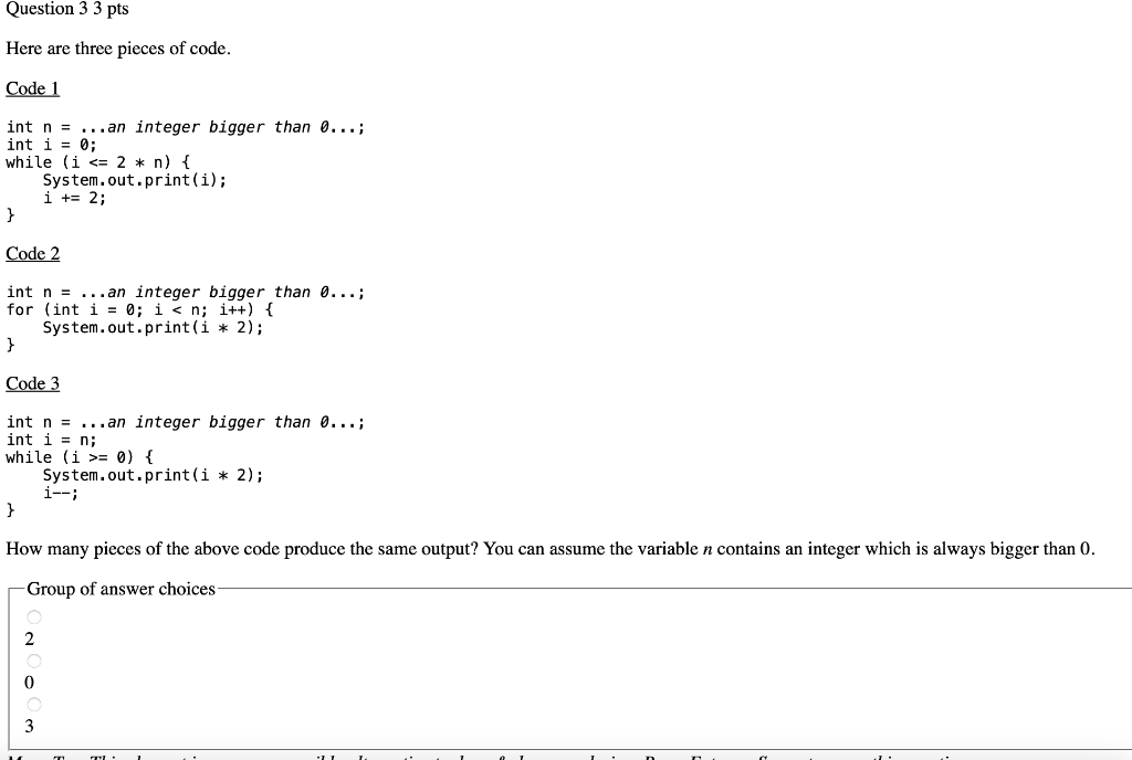 Solved Question 3 3 pts Here are three pieces of code. Code | Chegg.com