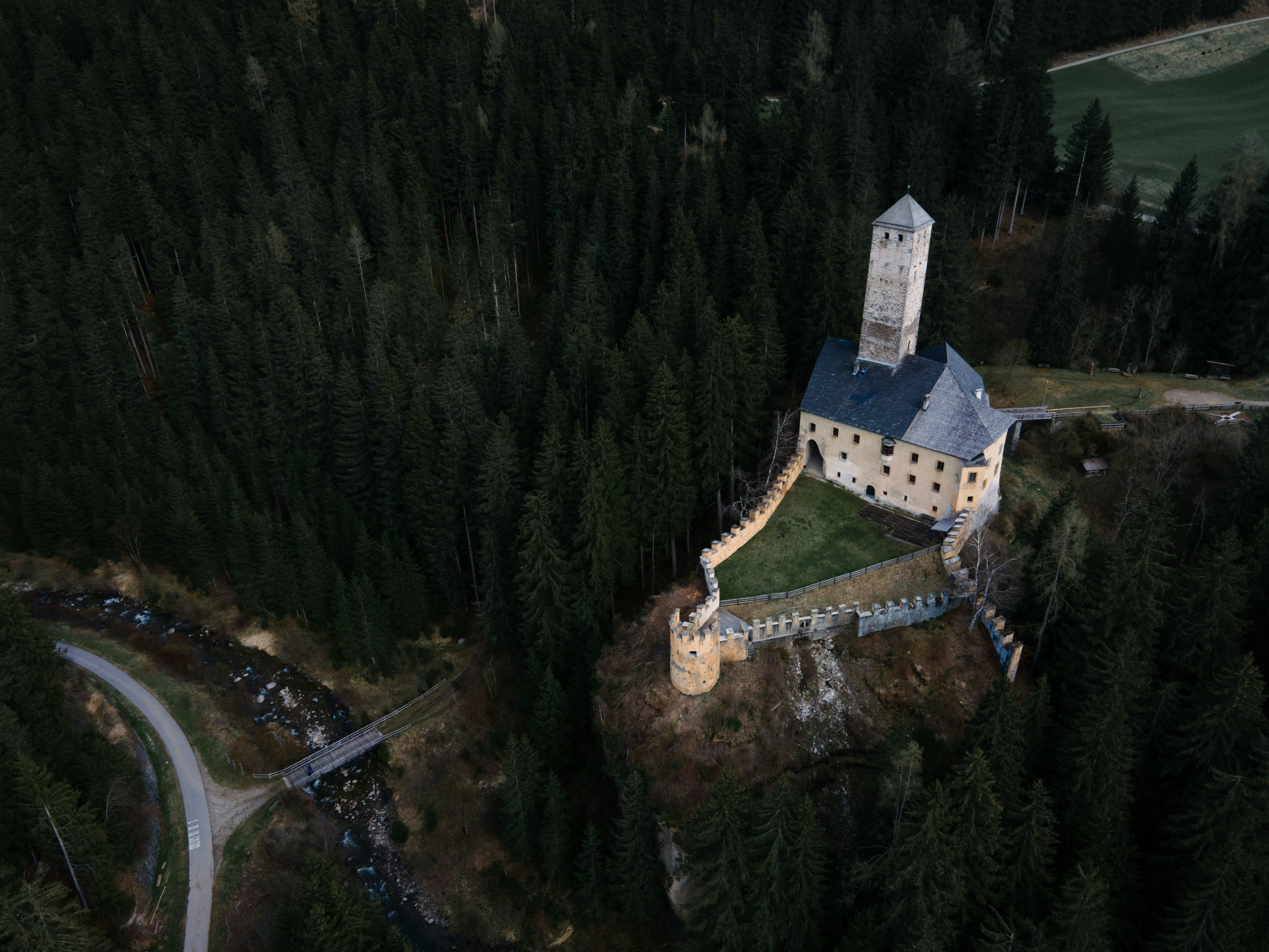 An aerial view of a castle in the middle of a forest photo – Free ...