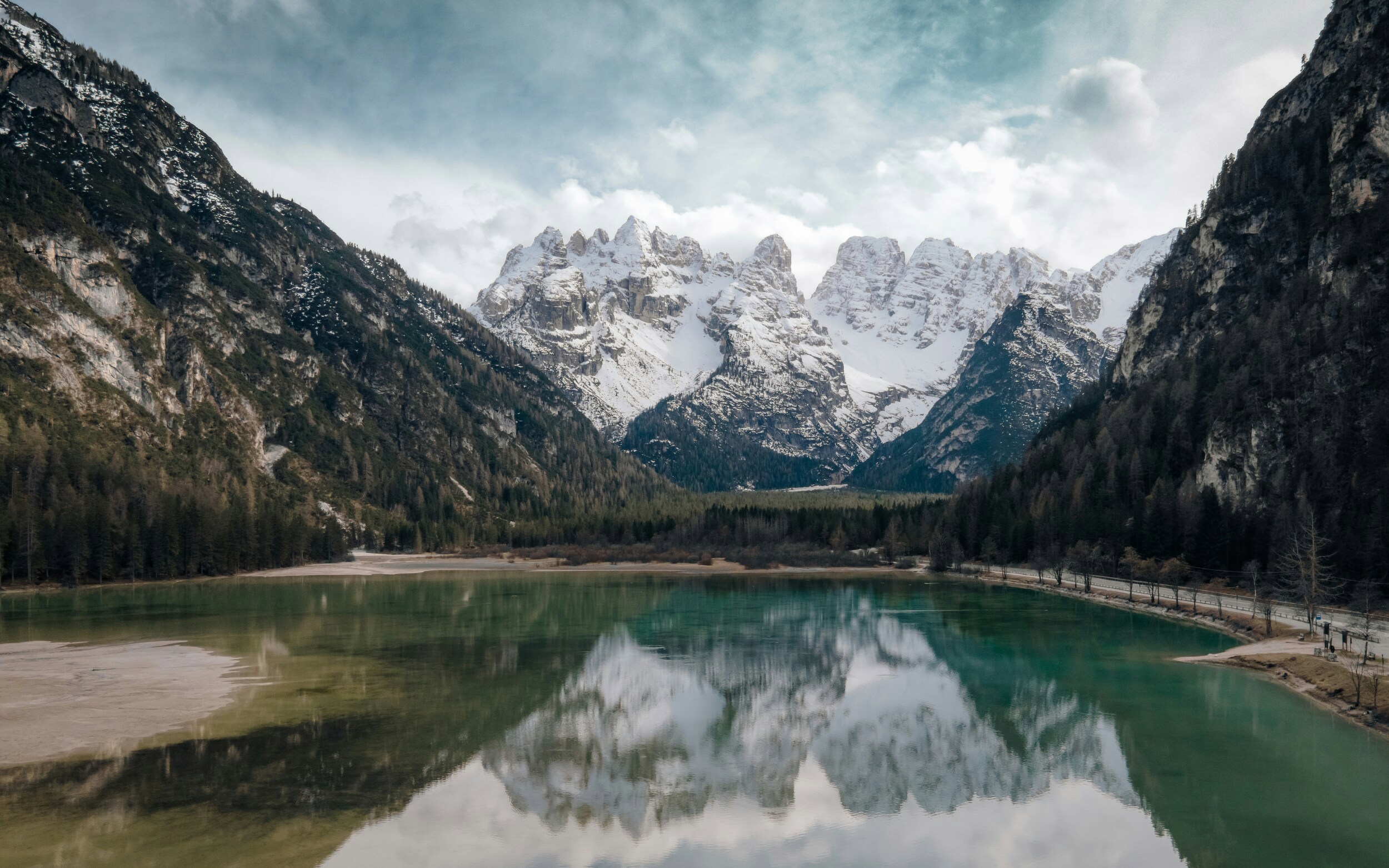 A scenic view of a snow covered mountain range photo – Free Lago di ...