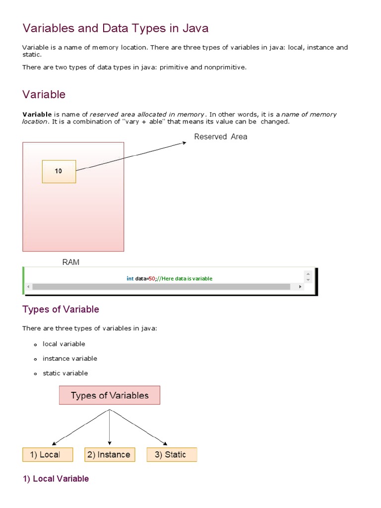 Types of Variables in Java | PDF