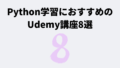 Based on this image's title: “Python学習におすすめのUdemy講座8選!選び方や学習ロードマップも解説”