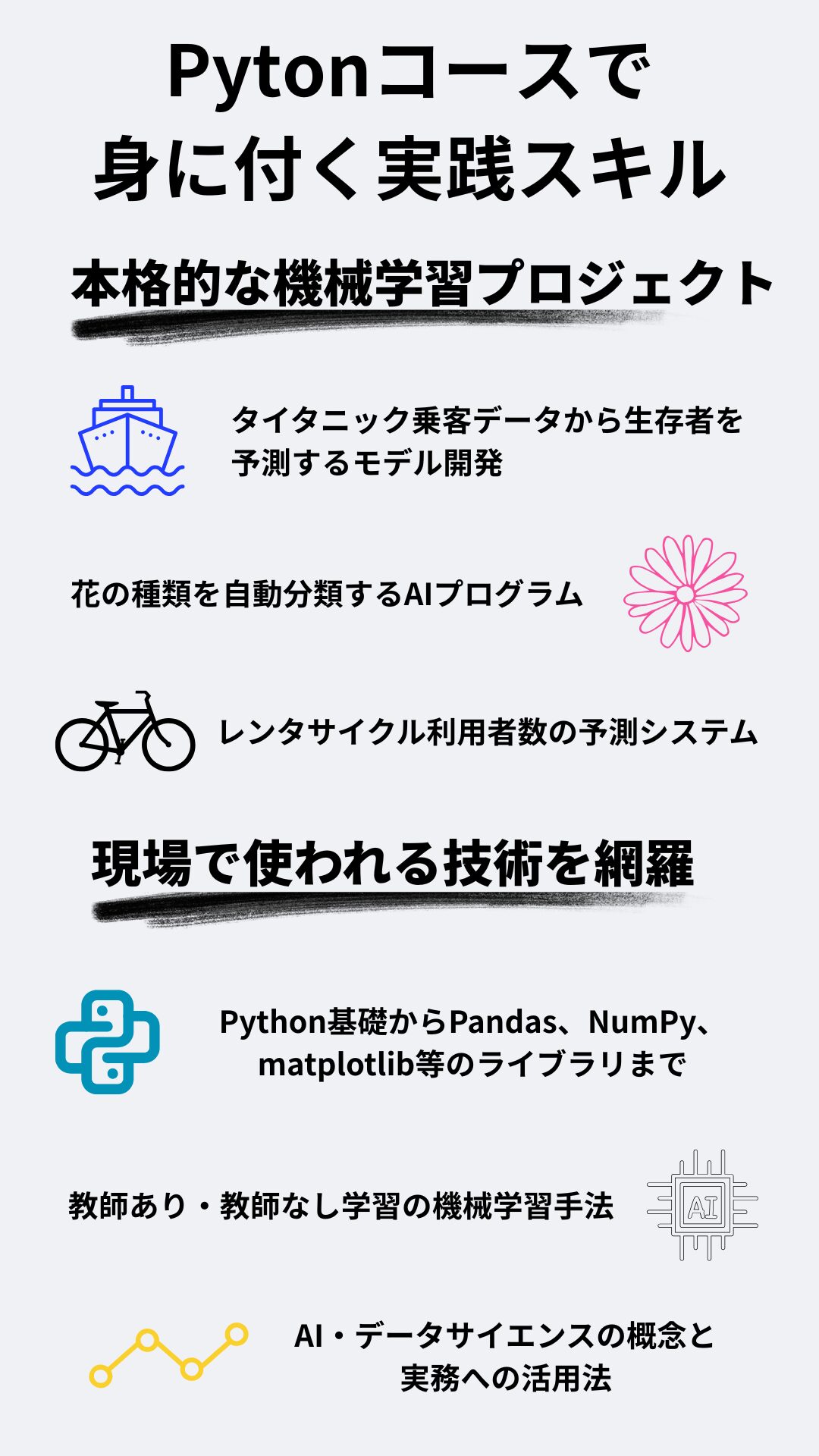 【初心者向け】Pythonによる機械学習の学習ロードマップ|機械学習でできることの事例30例も交えて徹底解説【無料で14,000文字!】