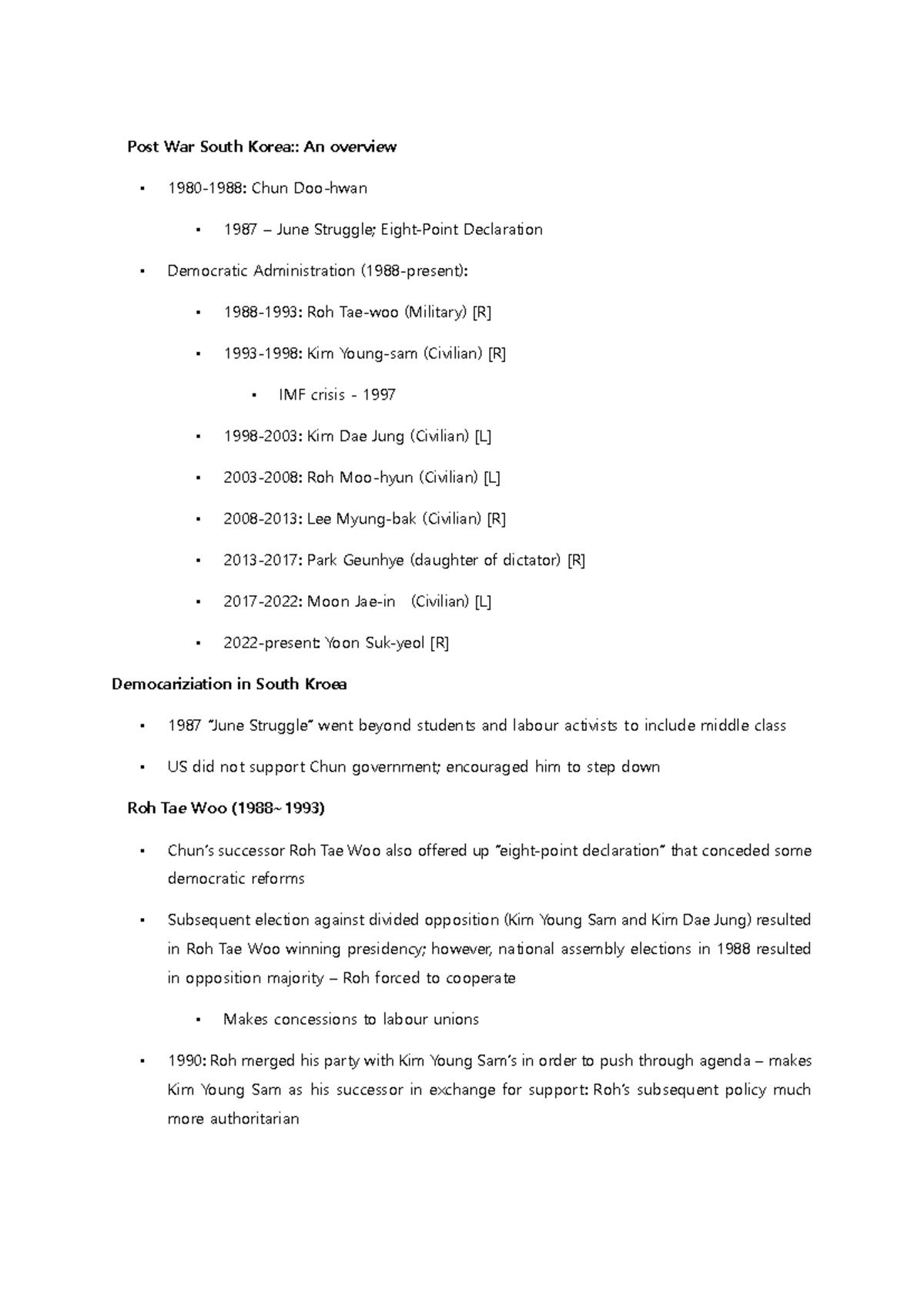 Post War South Kore1 - 1993-1998) - Launches anti-corruption campaign ...
