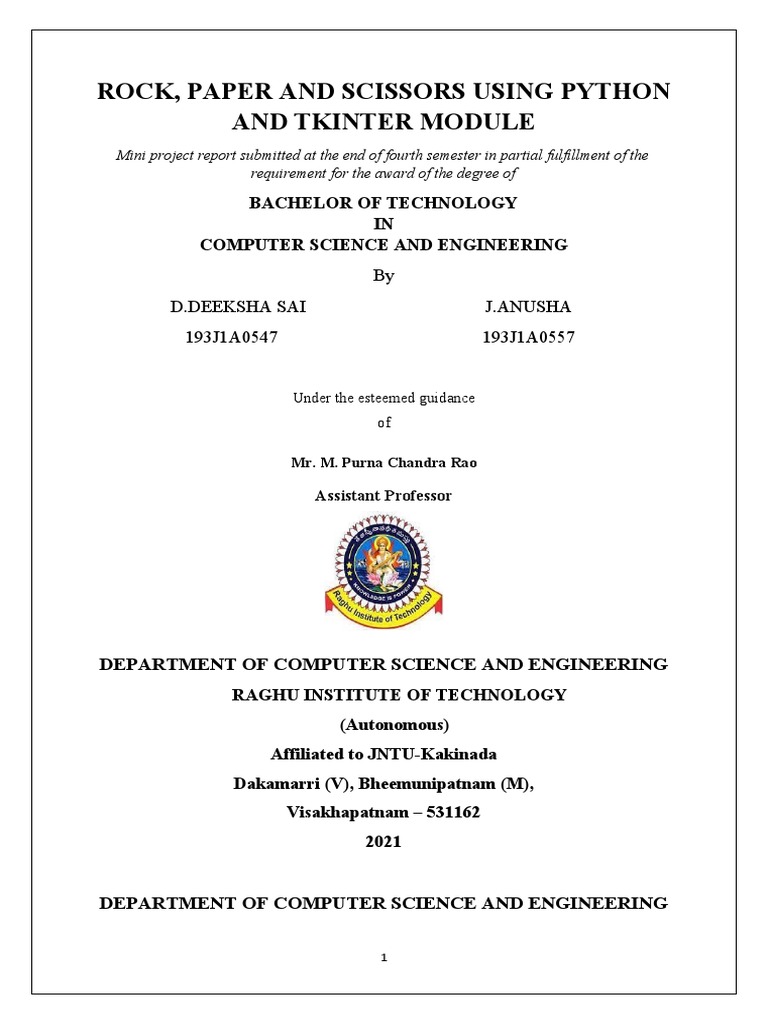 Rock, Paper and Scissors Using Python and Tkinter Module: Bachelor of ...
