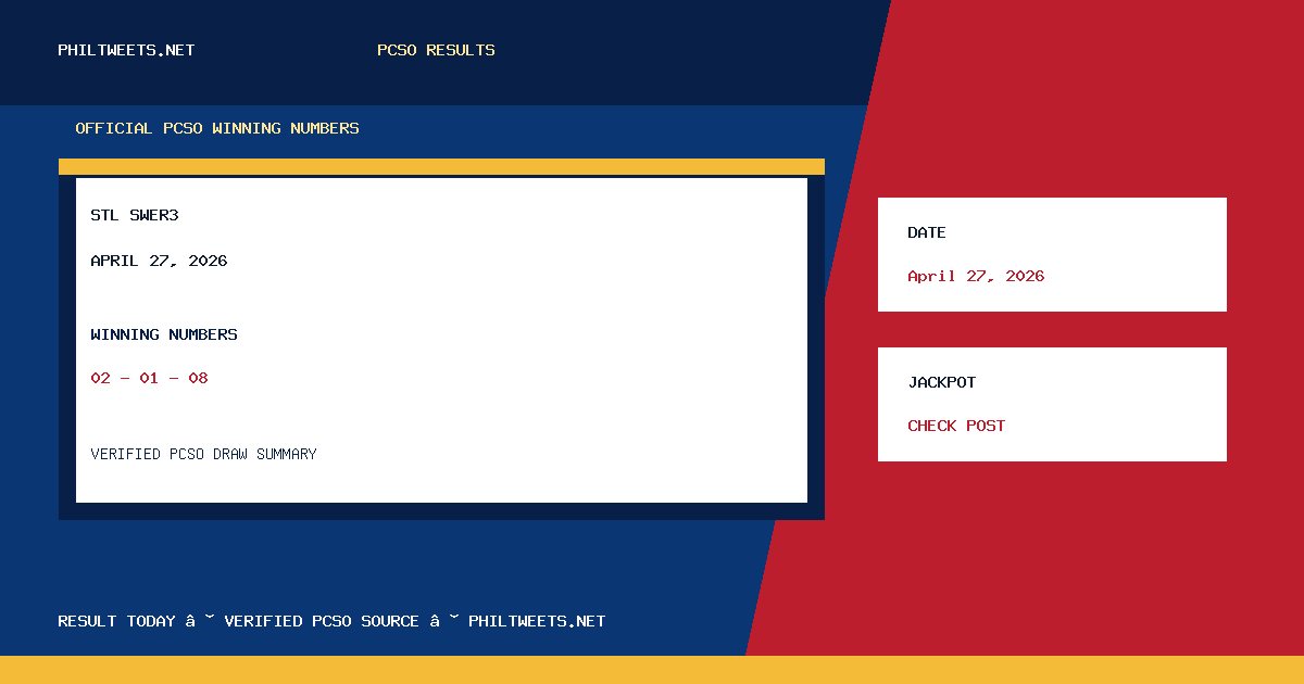 STL Swer3 Result Today April 27, 2026 Released — PCSO Winning Numbers