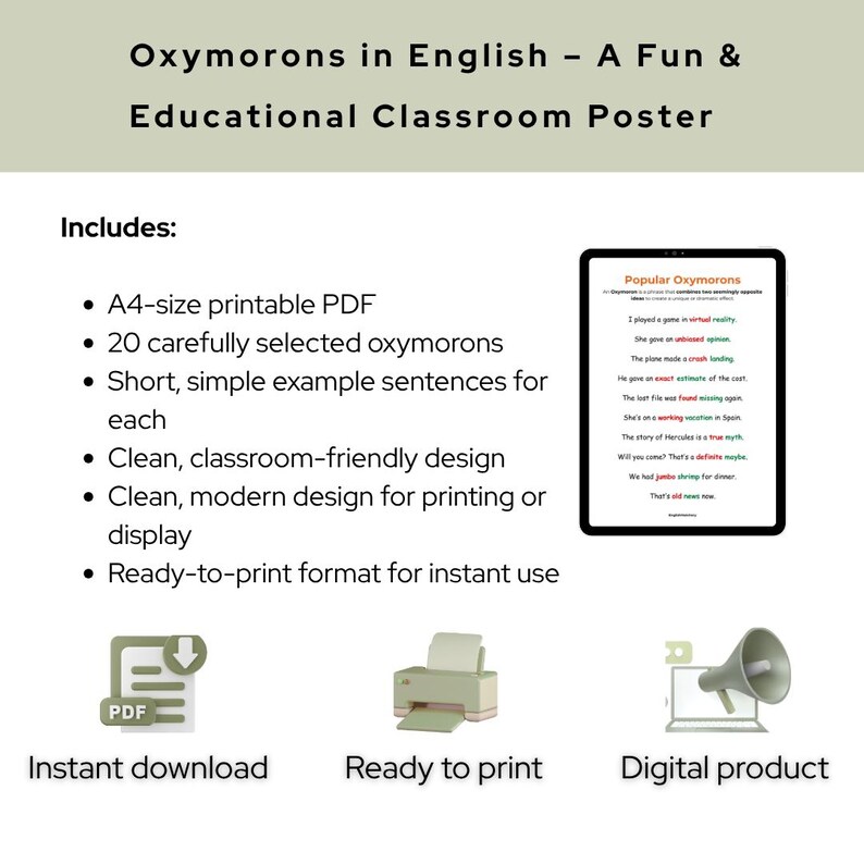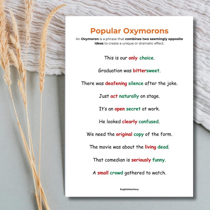 Oxymorons in English – A Fun & Educational Classroom Poster (A4 ...