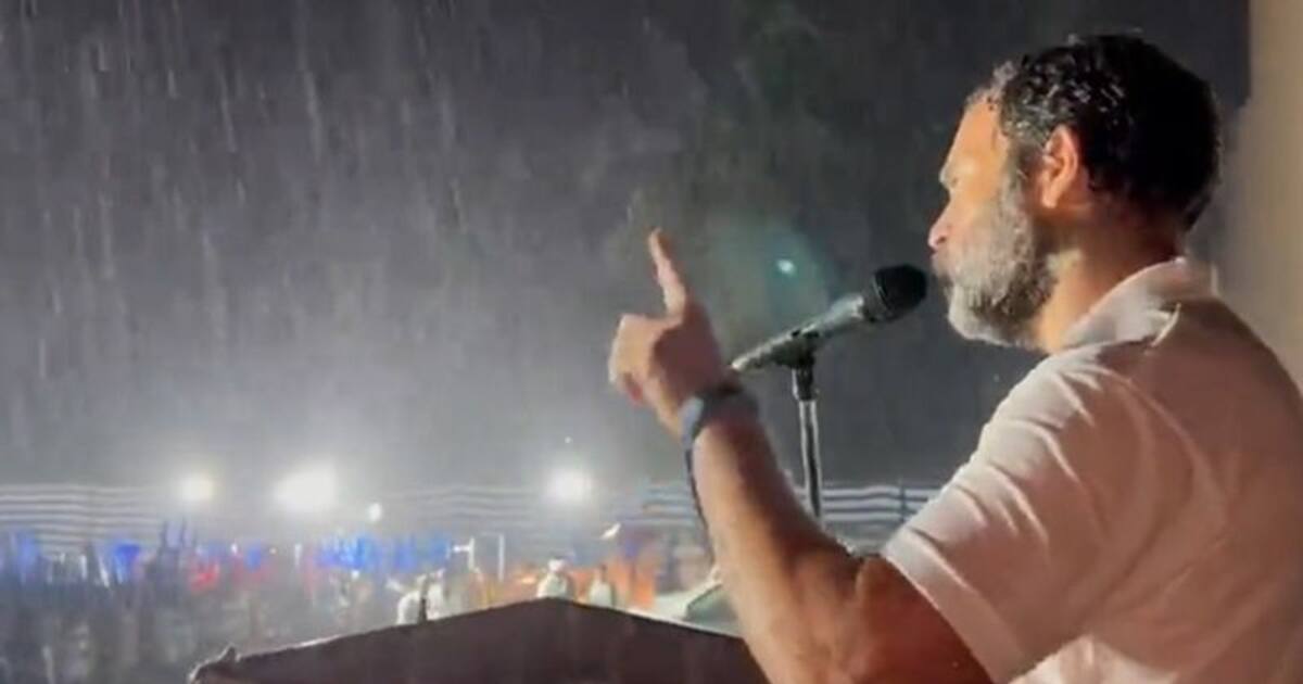 Viral photo: Rahul Gandhi delivers speech amid heavy rainfall during ...