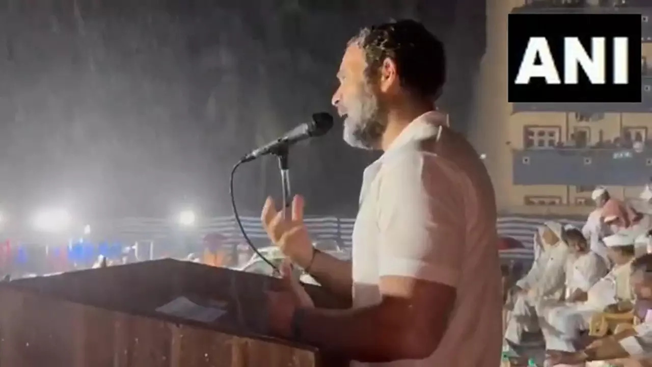 Watch: Crowd cheers as Rahul Gandhi addresses rally amid heavy rains in ...
