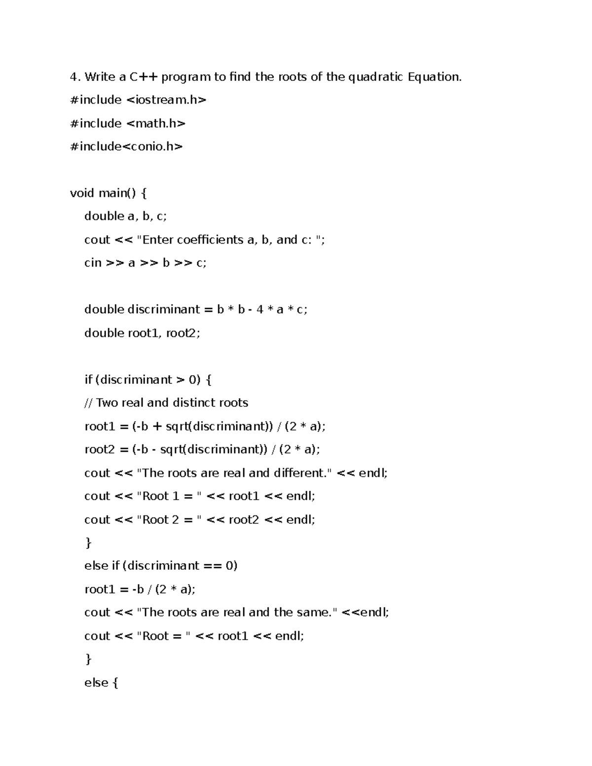 C++ Program To Find Roots Of Quadratic Equation Using Switch 27+ Pages ...