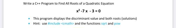 Solved Write a C++ Program to Find All Roots of a Quadratic | Chegg.com