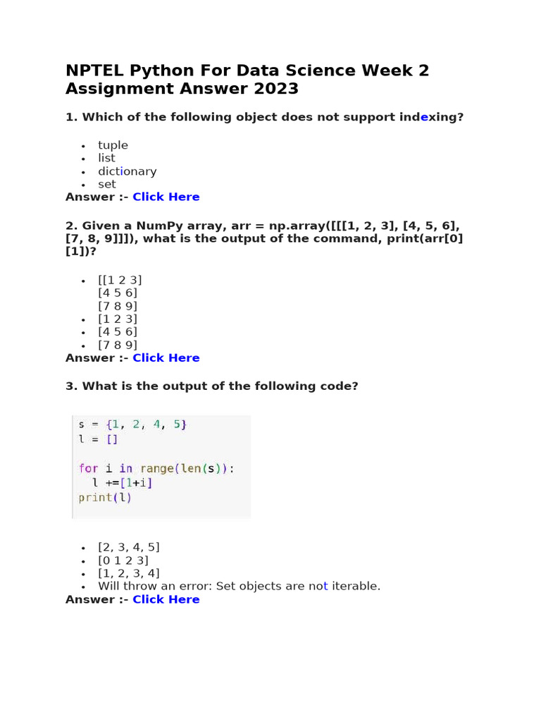 NPTEL Python Data Science Week 2 Answers | PDF | Python (Programming ...
