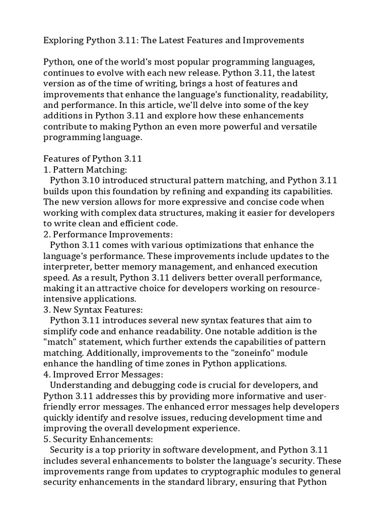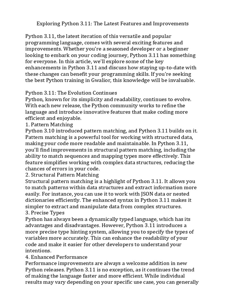 Exploring Python 3.11 The Latest Features and Improvements | PDF ...