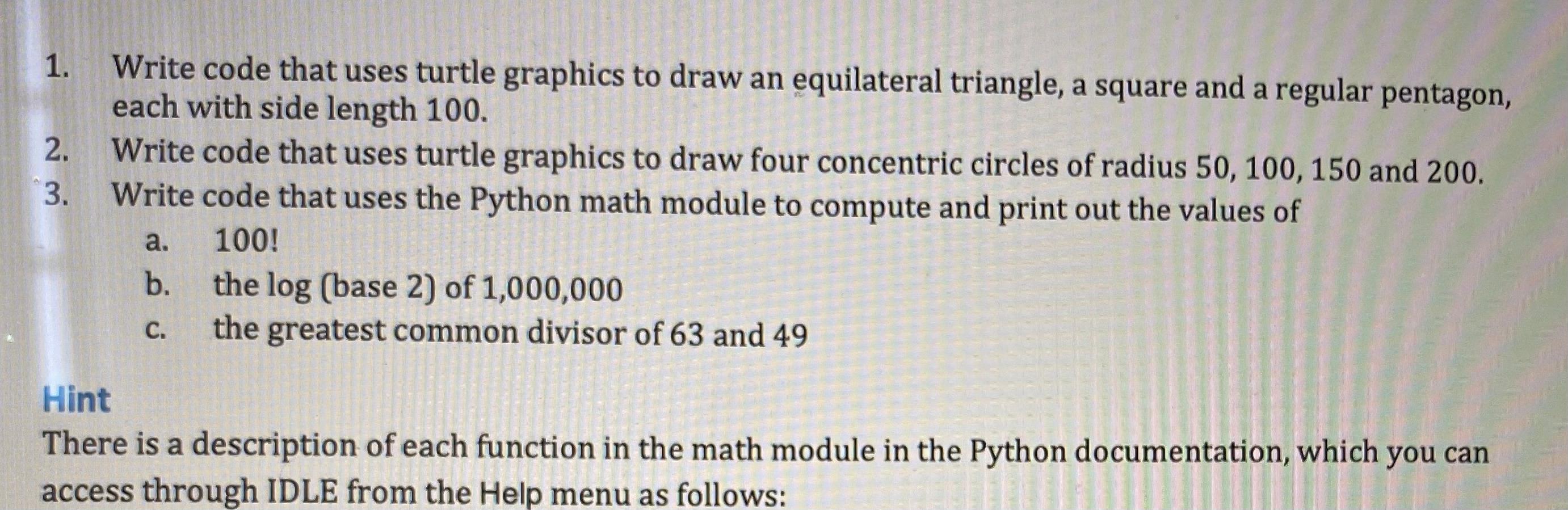 Solved OBJECTIVE You will learn how to use the Turtle module | Chegg.com