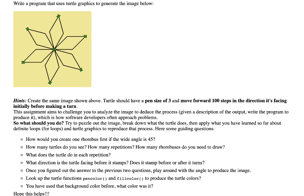 Solved This is your opportunity to be creative with Turtle | Chegg.com